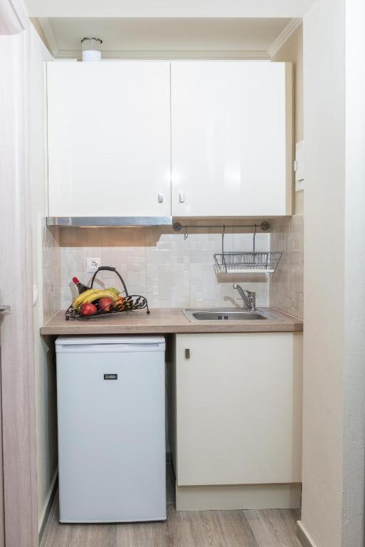 Deluxe Room. Including a fully equipped kitchenette with fridge and inductive cooking hobs, this upper floor, air-conditioned studio features a balcony, a 32" smart TV with satellite channels and free WiFi. Other amenities include a microwave and coffee machine. Kindly note that this room type can accommodate a 4th guest on request and upon a charge. ;