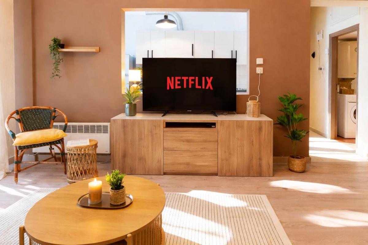 The apartment has 2 bedrooms, a living room with a flat-screen TV, an equipped kitchen, and 1 bathroom with a bath and a hair dryer.